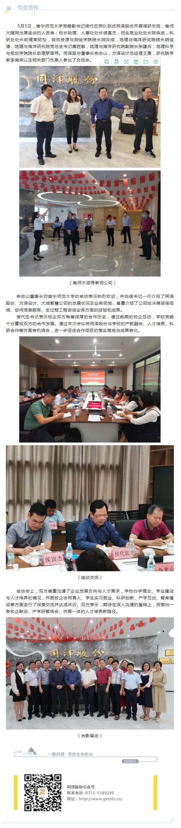 校企合作 | 南寧師范大學(xué)到訪(fǎng)同澤股份調研交流