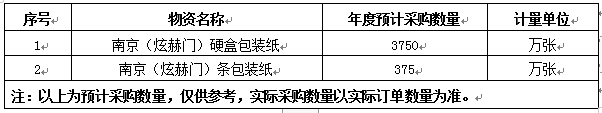 一、招標項目名稱(chēng):2023-2025年合作品牌條、盒包裝紙采購之南京(炫赫門(mén))項目。